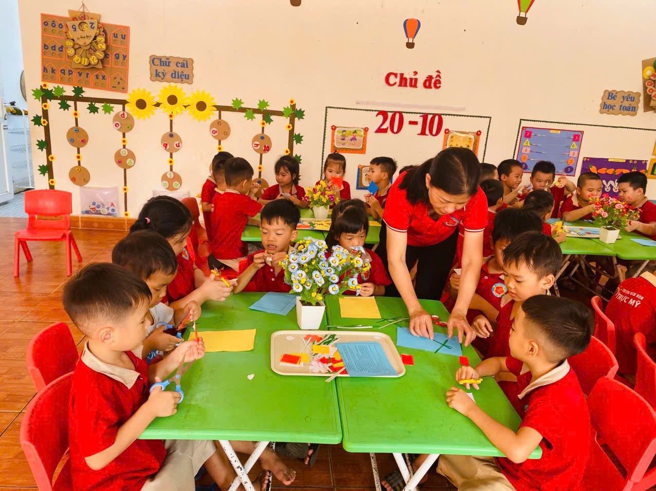 Ngoài kể những câu chuyện hay những lời giảng trên lớp, các cô còn truyền đạt ý nghĩa của ngày 20/10 thông qua những bài thơ, bài hát, bài vè để bé không chỉ vừa có thêm tri thức, mà còn hiểu cũng như thể hiện được tình cảm dành cho những người yêu thương nhất. Trong đó có hoạt động “Cùng làm quà tặng bà, tặng mẹ” do các bé Lớp 5TA2 Trường Mầm non Trực Mỹ đã tự tay làm những món quà ý nghĩa giành tặng mẹ, tặng những người phụ nữ thân yêu của mình.