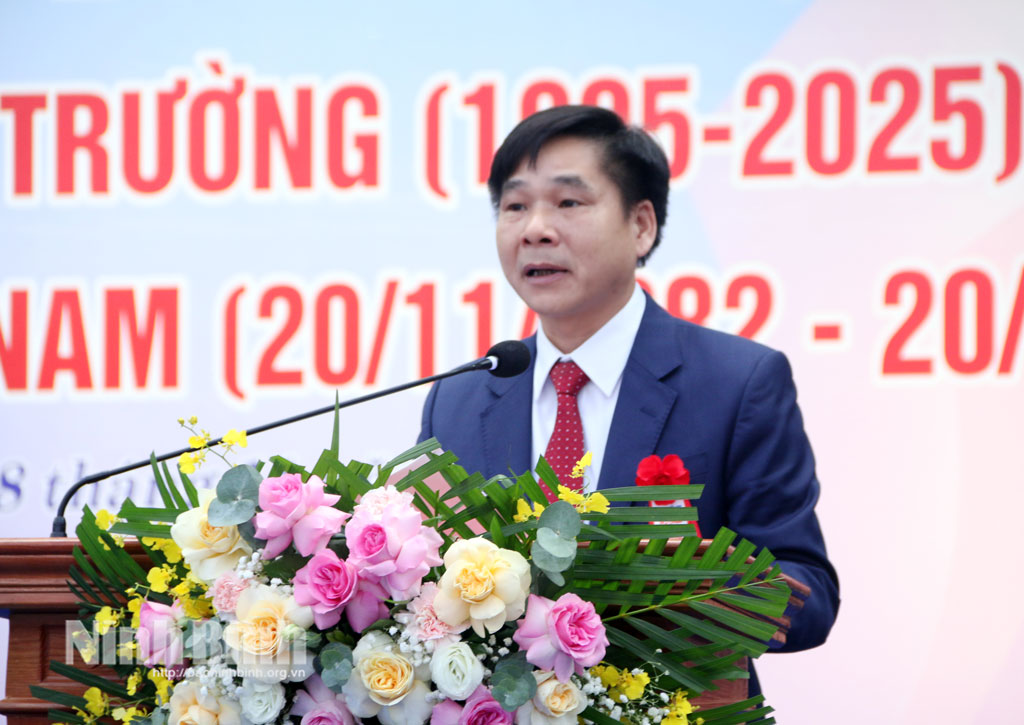 Tặng hoa, chúc mừng nhà trường, thay mặt Tỉnh ủy, HĐND, UBND, Ủy ban MTTQ Việt Nam tỉnh, đồng chí Nguyễn Anh Chức, Ủy viên BTV Tỉnh ủy, Phó Chủ tịch UBND tỉnh biểu dương, ghi nhận những thành tích mà các thế hệ thầy và trò nhà trường đạt được trong thời gian qua.