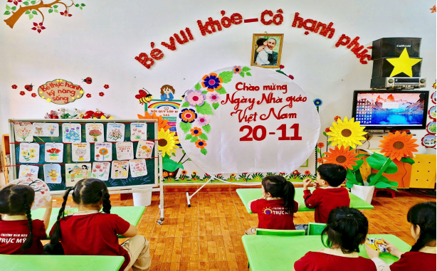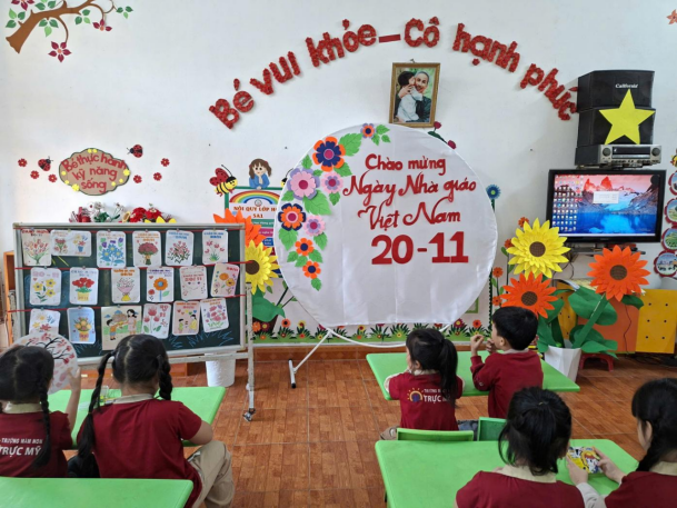 CÔ VÀ TRÒ LỚP 5 TUỔI A1 TRƯỜNG MẦM NON TRỰC MỸ TƯNG BỪNG TỔ CHỨC CÁC HOẠT ĐỘNG GIÁO DỤC CHÀO MỪNG NGÀY NHÀ GIÁO VIỆT NAM 20/11
