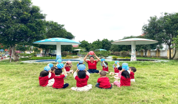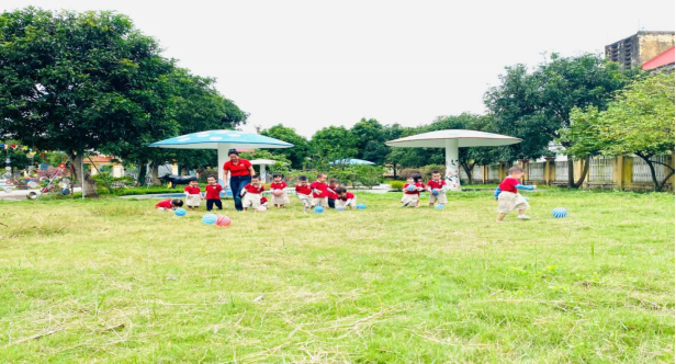 (Hình ảnh trẻ chơi các trò chơi với quả bóng)