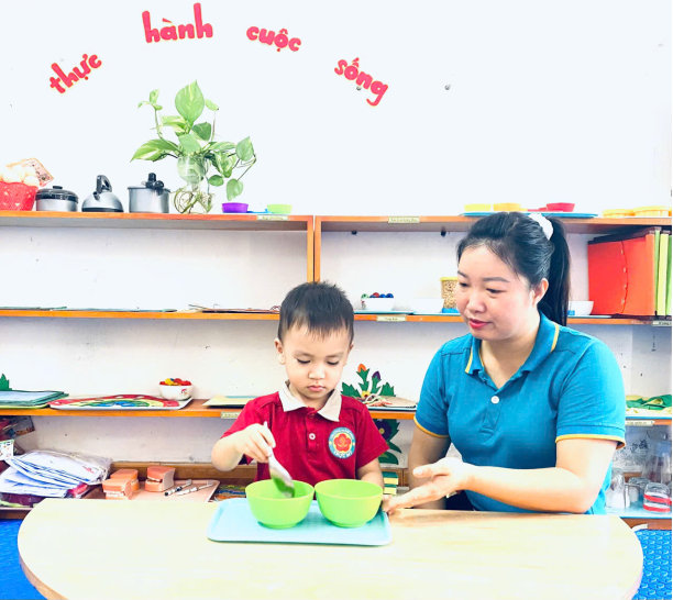 (Hoạt động xúc chuyển hạt bằng thìa)