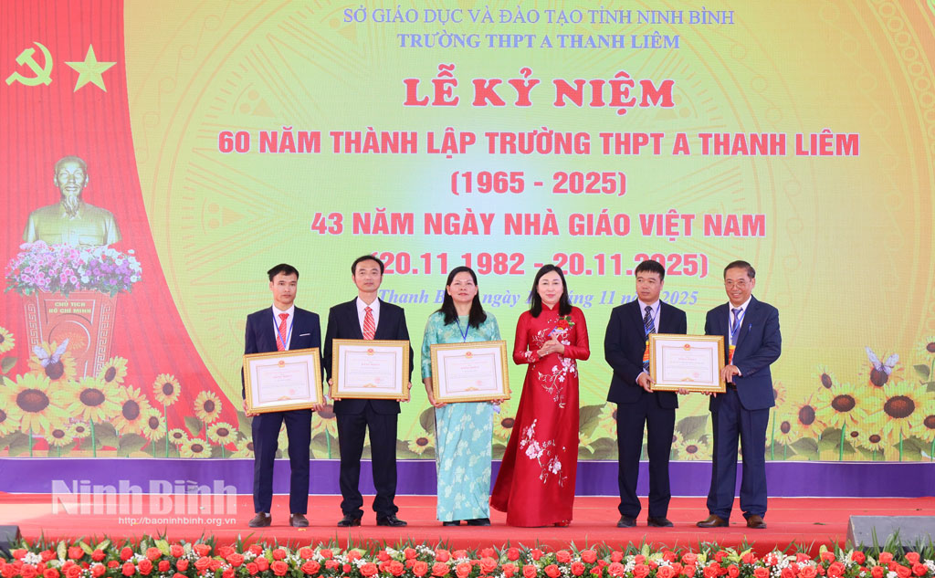 Nhân dịp này, đồng chí Phó Bí thư Thường trực Tỉnh ủy Đinh Thị Lụa trao tặng Bằng khen của Chủ tịch UBND tỉnh cho Trường THPT A Thanh Liêm và các tập thể, cá nhân có thành tích xuất sắc của Trường THPT A Thanh Liêm.