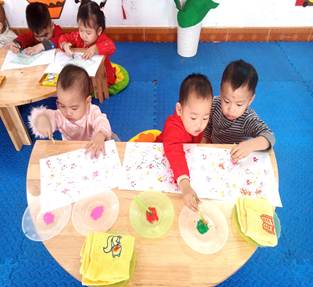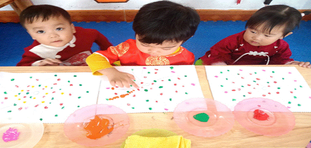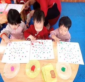 Các bé được làm quen với màu sắc, tự do sáng tạo những bông pháo hoa rực rỡ trên giấy. Hoạt động không chỉ mang đến niềm vui mà còn giúp phát triển khả năng quan sát, tư duy thẩm mỹ và sự khéo léo của đôi tay.
