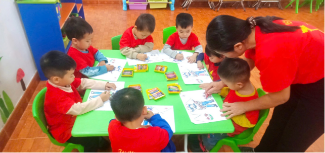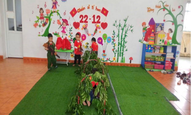 Thông qua các hoạt động học tập trên lớp, các trò chơi trải nghiệm, hoạt động ngoài trời và sinh hoạt tại các góc, các bé đã được làm quen, tìm hiểu về công việc cũng như hình ảnh cao đẹp của các chú bộ đội. Bên cạnh đó, các con còn được tham gia nhiều hoạt động phong phú như đóng vai làm chú bộ đội, tô màu, vẽ tranh và sáng tạo nên những bức tranh sinh động, thể hiện sự hồn nhiên và cảm xúc yêu mến của mình đối với người lính.