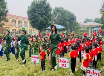 Ngoài ra, các con lớp 3TA1 được tham gia trải nghiệm chương trình “Sân chơi chiến sỹ” do trường tổ chức, các con được tham gia hoạt động đồng diễn với các bài hát mang chủ đề: Chú bộ đội, cháu hát về đảo xa, khát vọng tuổi trẻ cùng các bạn biểu diễn và thưởng thức chương trình văn nghệ. Thông qua chuỗi hoạt động ý nghĩa này, trẻ lớp 3TA1 không chỉ được học mà còn được trải nghiệm, góp phần giáo dục trẻ lòng yêu quê hương, đất nước, bồi dưỡng những cảm xúc tích cực và nhân cách tốt đẹp ngay từ những năm đầu đời.