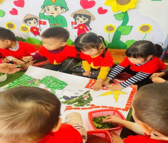 Bên cạnh đó, hoạt động chấm màu, dán trang trí hình chú bộ đội đã mang đến cho trẻ nhiều niềm vui và hứng thú. Trẻ được tự tay tạo ra sản phẩm của mình, phát triển khả năng sáng tạo, tăng sự tự tin và biết trân trọng thành quả lao động.