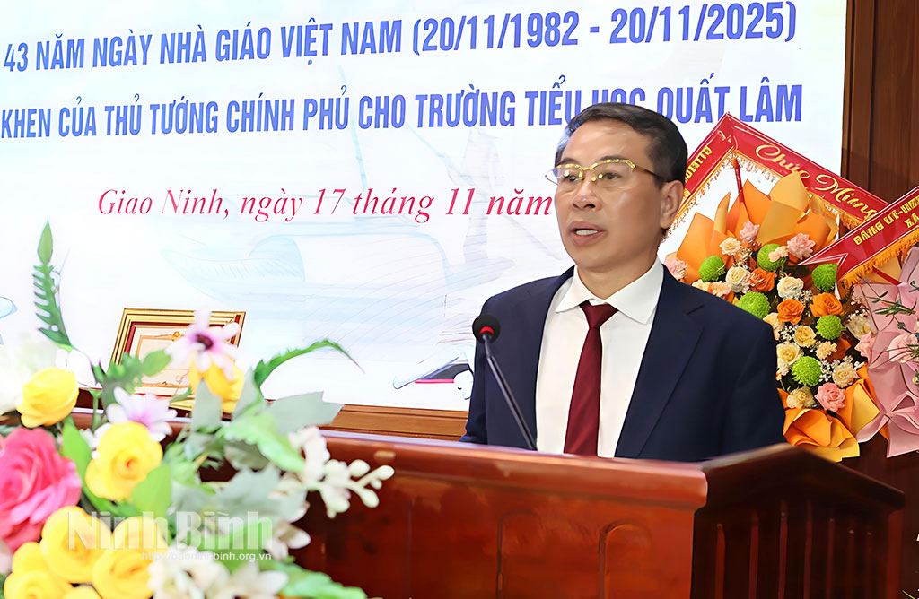 Đồng chí Phó Chủ tịch HĐND tỉnh đề nghị ngành Giáo dục xã Giao Ninh tiếp tục quán triệt, triển khai thực hiện nghiêm túc Nghị quyết số 71 của Bộ Chính trị về đột phá phát triển giáo dục và đào tạo. Triển khai thực hiện hiệu quả các đề án, kế hoạch trong chiến lược phát triển giáo dục của tỉnh Ninh Bình đến năm 2030, tầm nhìn đến năm 2045. Tập trung nâng cao chất lượng giáo dục toàn diện, chú trọng giáo dục đạo đức, kỹ năng sống và hình thành phẩm chất công dân cho học sinh.