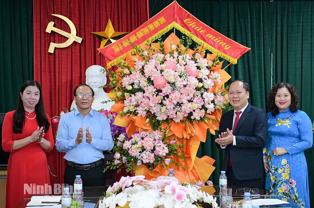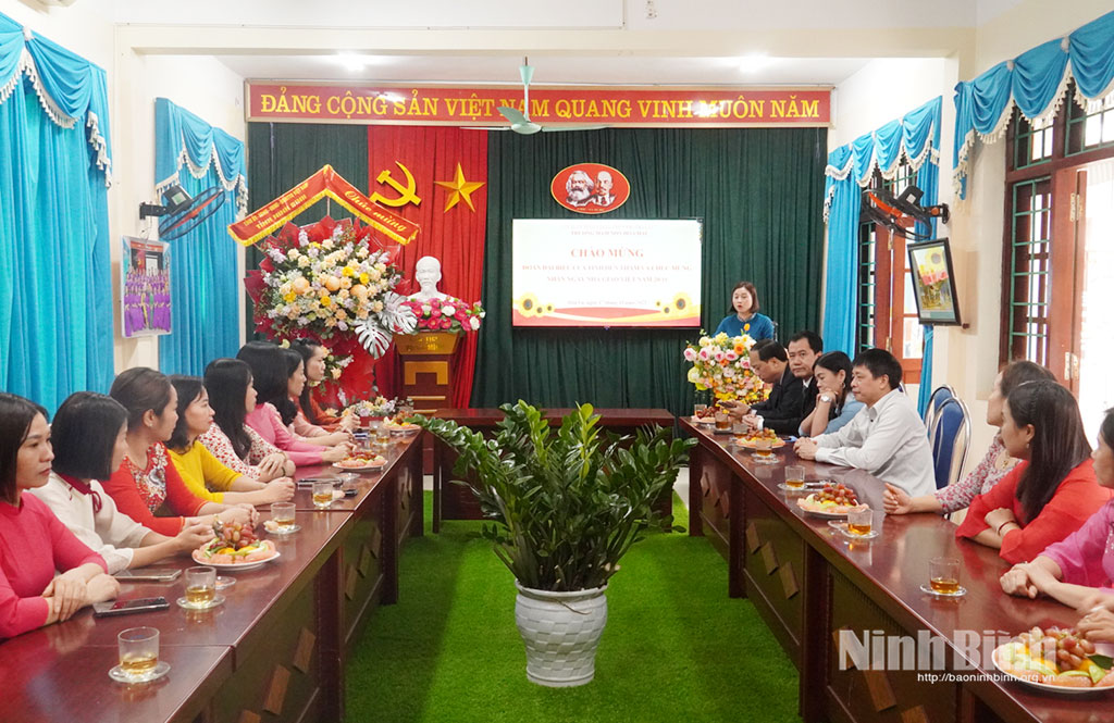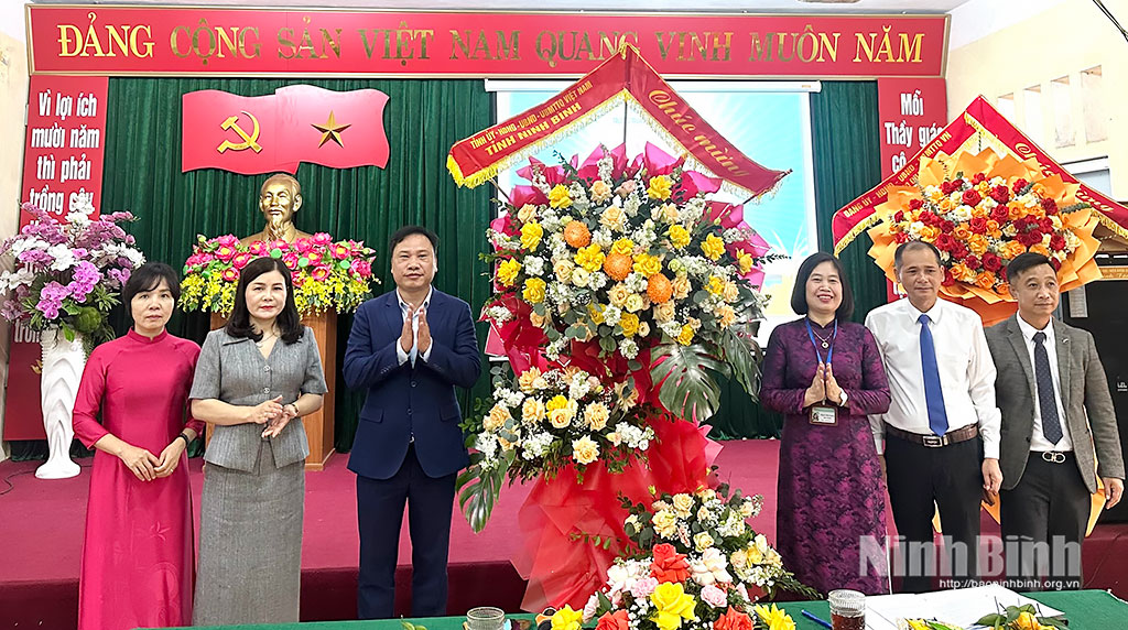 * Sáng 17/11, thừa ủy quyền của lãnh đạo Tỉnh ủy, HĐND, UBND, Ủy ban MTTQ Việt Nam tỉnh, đoàn đại biểu của Sở Giáo dục và Đào tạo do đồng chí Đinh Quốc Trường, Phó Giám đốc Sở làm trưởng đoàn đã đến thăm, chúc mừng cán bộ, giáo viên, nhân viên Trường Mầm non Hoa Mai (phường Hoa Lư). Cùng đi có đại diện một số phòng của Sở Giáo dục và Đào tạo; đại diện UBND phường Hoa Lư.