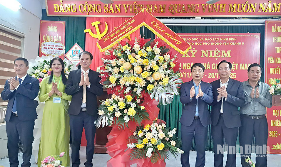 Phát biểu chúc mừng thầy và trò Trường THPT Yên Khánh B, đồng chí Hoàng Văn Kiên, Tỉnh ủy viên, Phó Chủ tịch HĐND tỉnh đã biểu dương những nỗ lực và thành tích mà nhà đã đạt được. Đồng thời khẳng định: Đảng, Nhà nước cũng như tỉnh Ninh Bình luôn quan tâm, đồng hành cùng giáo dục, thể hiện qua nhiều chính sách hỗ trợ, đầu tư cơ sở vật chất và nâng cao chất lượng đội ngũ. Quán triệt quan điểm chỉ đạo của Nghị quyết 71-NQ/TW, tỉnh Ninh Bình đang xây dựng kế hoạch, chương trình triển khai cụ thể hoá Nghị quyết với nhiều cơ chế, chính sách cho phát triển giáo dục và đào tạo của tỉnh nhà.