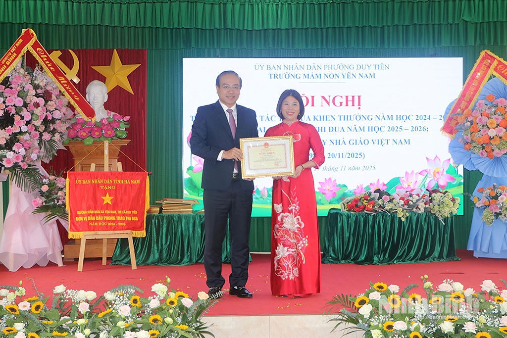 * Sáng 17/11, đồng chí Đặng Thanh Sơn, Ủy viên Ban Thường vụ Tỉnh ủy, Phó Chủ tịch Thường trực HĐND tỉnh đã tới dự Lễ kỷ niệm 43 năm Ngày Nhà giáo Việt Nam và triển khai công tác thi đua năm học 2025 – 2026 tại Trường Mầm non Yên Nam (phường Duy Tiên). Cùng dự có đại diện Văn phòng Đoàn đại biểu Quốc hội và HĐND tỉnh, Sở Giáo dục và Đào tạo; lãnh đạo Đảng ủy, HĐND, UBND phường Duy Tiên và tập thể cán bộ, giáo viên, đại diện các bậc phụ huynh của nhà trường.