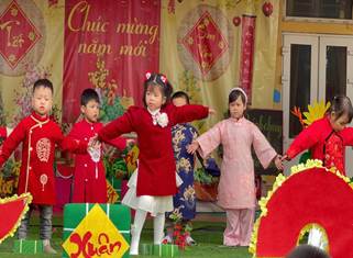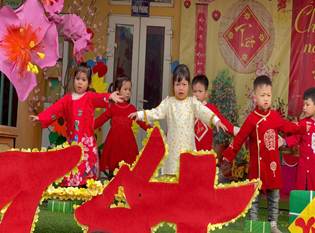 Trẻ còn được tham gia múa văn nghệ mừng xuân, qua đó rèn luyện sự mạnh dạn, tự tin trước tập thể, phát triển khả năng vận động theo nhạc và thể hiện cảm xúc vui tươi.