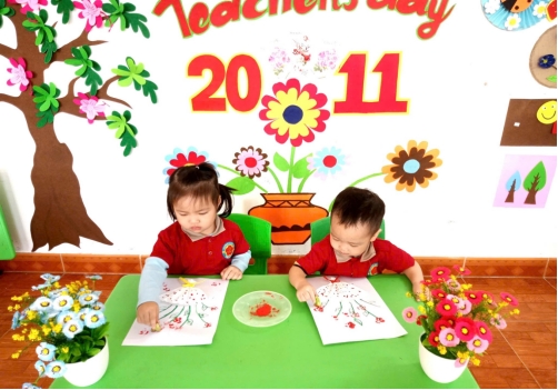 Trong những ngày qua, các con đã được tham gia nhiều hoạt động vui tươi như in những bông hoa, gắn quả bông thành bông hoa nhiều màu sắc tạo thành bó hoa xinh sắn để tặng cô, và các trò chơi phát triển kỹ năng. Dưới bàn tay nhỏ nhắn và sự sáng tạo ngộ nghĩnh, từng sản phẩm của con chứa đựng tình cảm trong sáng giành cho cô giáo của mình.