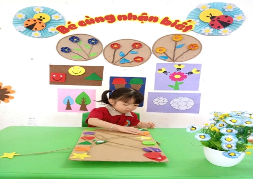 Bên cạnh đó, hoạt động ghép các hình khối với nhiều màu sắc cũng mang lại nhiều niềm vui. Những tác phẩm tuy còn vụng về nhưng chứa đựng biết bao tình cảm yêu thương của các con giàng cho cô giáo.