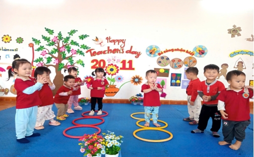 (Hình ảnh trẻ tham gia các trò chơi vận đông, múa hat tập thể)