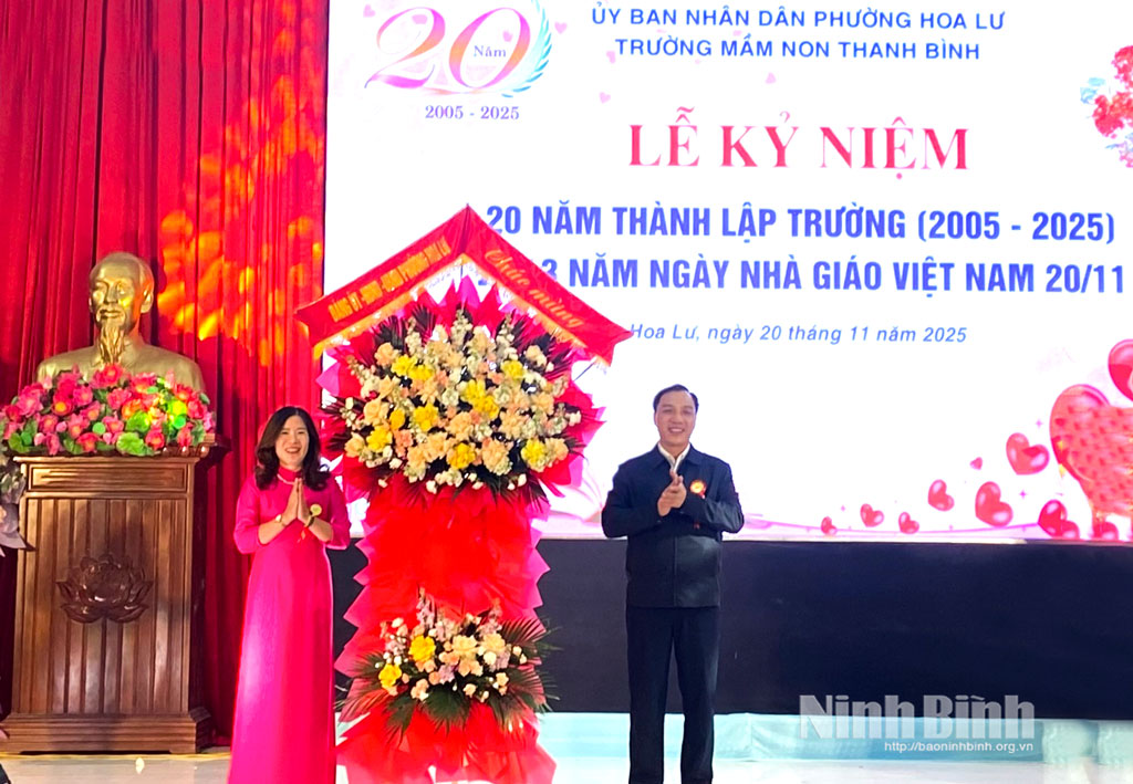 * Dự lễ kỷ niệm lễ kỷ niệm 20 năm thành lập trường (2005-2025) và 43 năm Ngày Nhà giáo Việt Nam (20/11/1982-20/11/2025) tại Trường Mầm non Thanh Bình (phường Hoa Lư) có các đồng chí lãnh đạo UBND phường Hoa Lư.