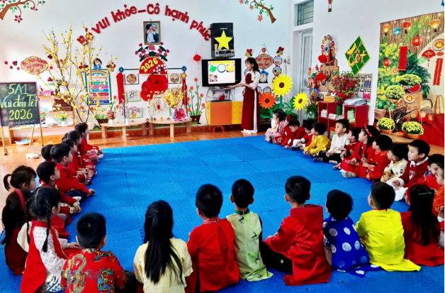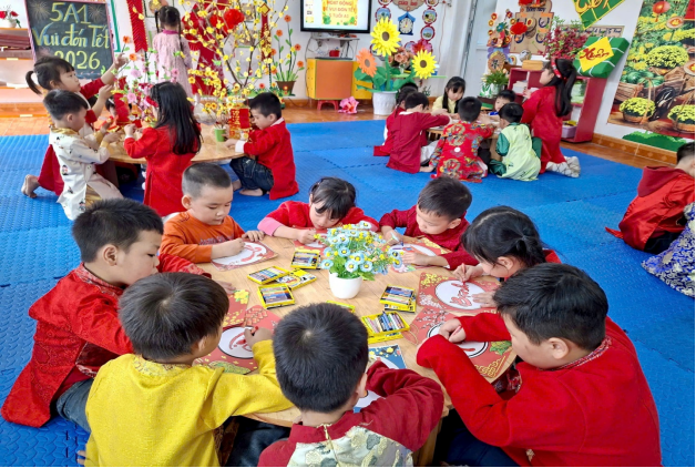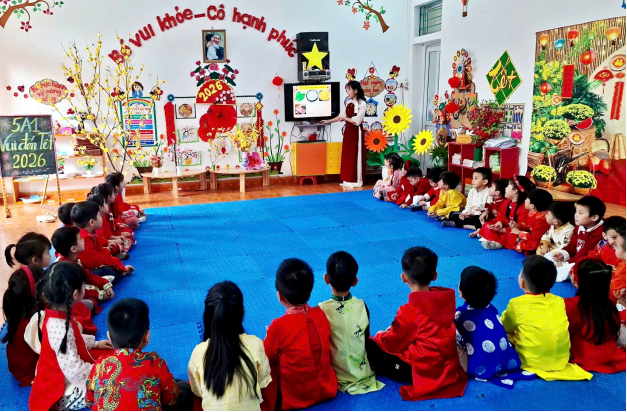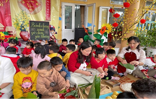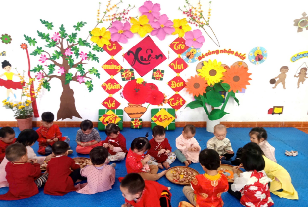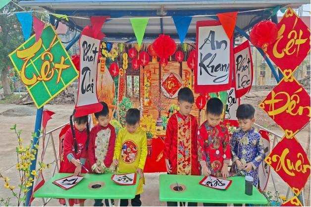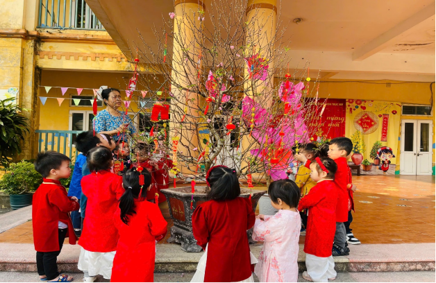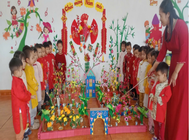 Tết Nguyên Đán là nét đẹp văn hóa truyền thống lâu đời của dân tộc Việt Nam, chứa đựng nhiều giá trị nhân văn sâu sắc. Thông qua các hoạt động trải nghiệm thực tế, nhà trường mong muốn giúp trẻ được làm quen với phong tục, tập quán ngày Tết, từ đó hình thành cho trẻ tình yêu quê hương, đất nước, biết trân trọng những giá trị truyền thống tốt đẹp của dân tộc.