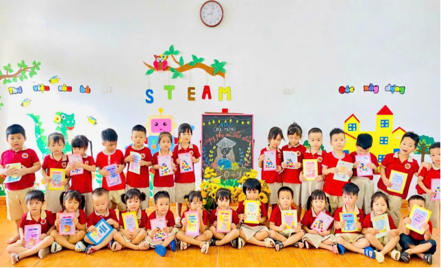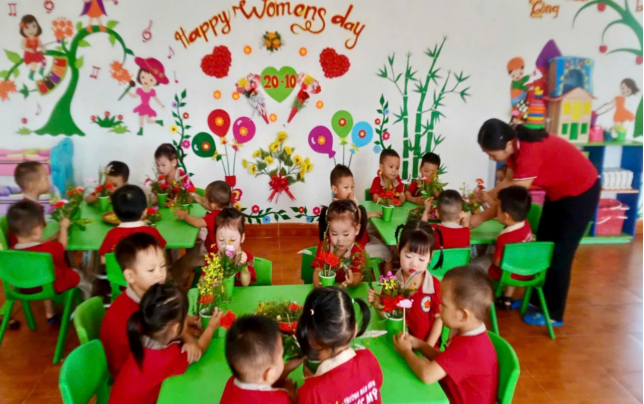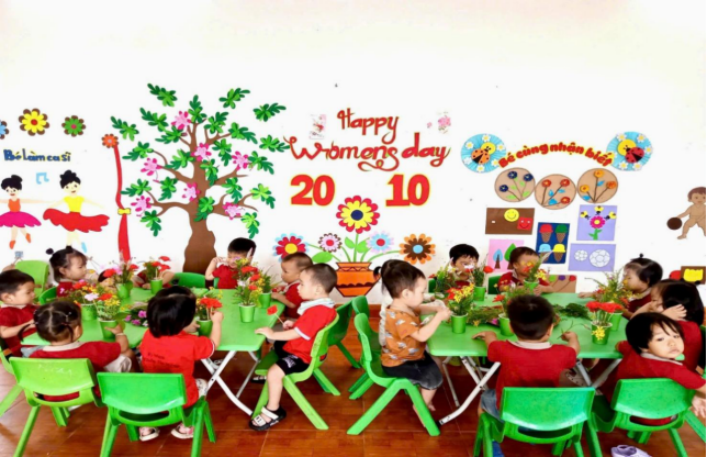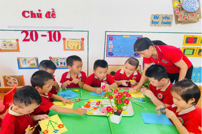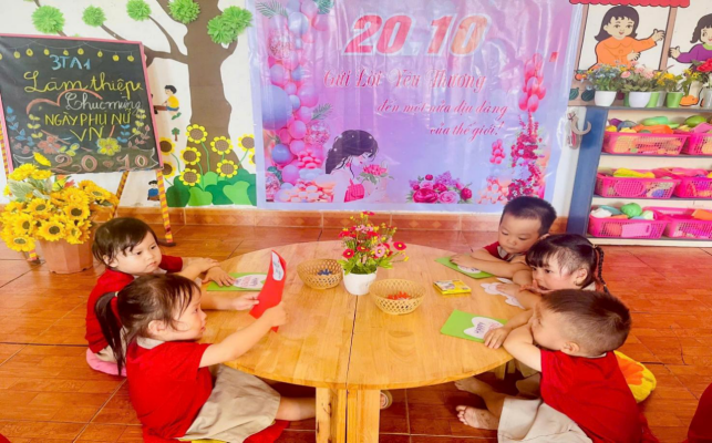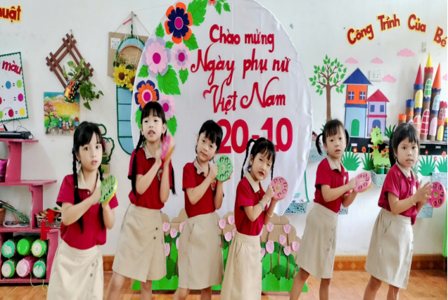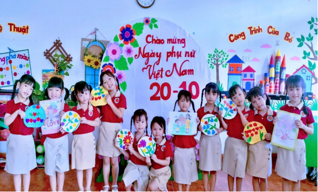 Đặc biệt nhà trường đã tổ chức chuỗi hoạt động trải nghiệm cho trẻ với nhiều nội dung phong phú như: làm thiệp tặng mẹ, cắm hoa nghệ thuật, biểu diễn văn nghệ và trò chơi dân gian. Những đôi bàn tay nhỏ xinh, những ánh mắt hồn nhiên, cùng những lời chúc đáng yêu của các bé đã mang đến niềm vui và xúc động cho các cô giáo, các bậc phụ huynh.