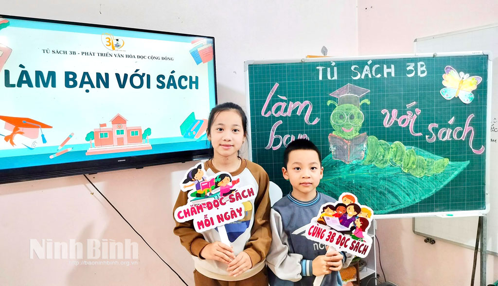 Là cán bộ thư viện Trường THCS Quỳnh Lưu, hằng ngày được tiếp xúc với sách, chị Mai Thị Huệ (thôn Lai Các, xã Quỳnh Lưu) thấu hiểu giá trị mà việc đọc mang lại, nhất là đối với trẻ em. Tình yêu sách của chị đã truyền sang các con của mình rồi lan tỏa tới các em nhỏ trong thôn, vì thế tháng 6/2021, chị đã mở tủ sách gia đình mang tên “3B”. Tên gọi “3B” không chỉ là viết tắt của tên ba người con Bống – Bi – Bo mà còn mang ý nghĩa sâu sắc “Begin Book Best” (Hãy bắt đầu với sách để có những điều tuyệt vời nhất). Hiện tủ sách 3B có khoảng 1.000 đầu sách thuộc nhiều chủ đề chủ yếu phục vụ các em học sinh trong và ngoài thôn.